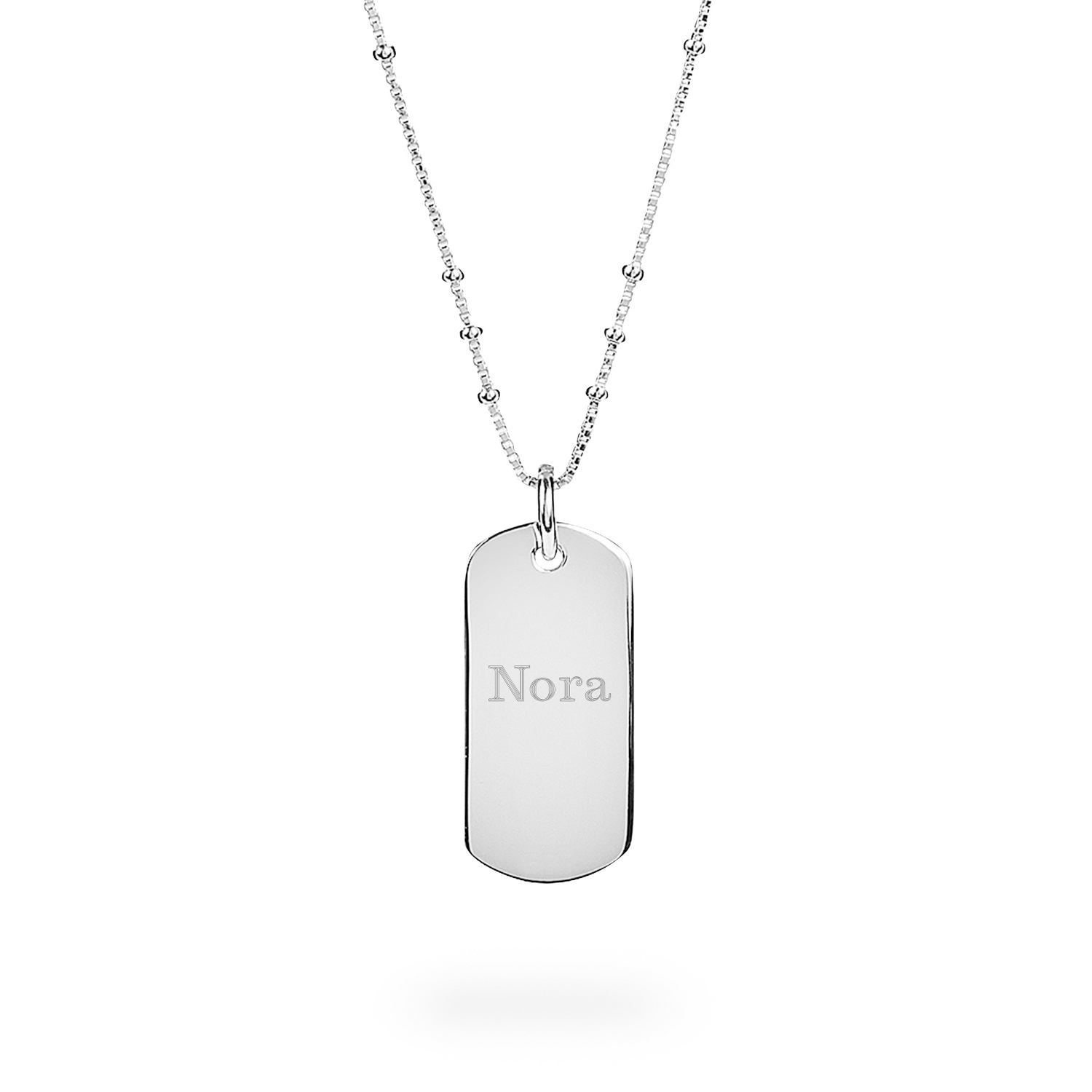 Solid sterling silver army dog tags are the point at which jewellery meets military style. The backsides of these engravable military dog tags can be personalized with a mechanical engraving which gives you bright cut letters. Each dog tag necklace can be personalized on with custom engraved artwork, text inscriptions, dates, and initials. The sterling silver engraved dog tags are attached to a 24 stainless steel chain and come in a velour jewelry box.